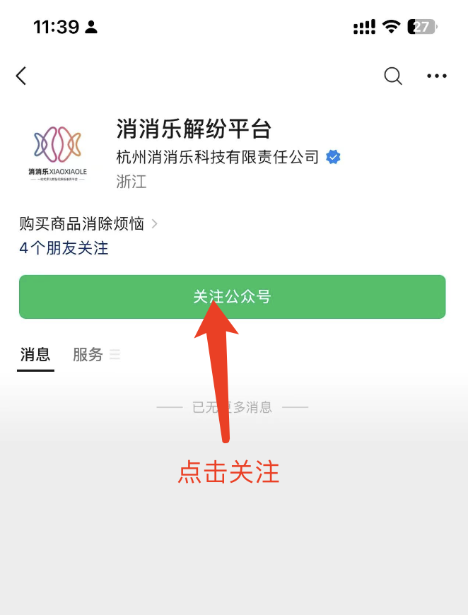 消消乐解纷平台,位于微信公众号“消消乐解纷平台”中。 进入步骤: ## 1. 扫描以下二维码,关注公众号“消消乐解纷平台” >  >  <br /> <br /> <br /> ## 2. 进入公众号并进入产品 进入公众号后,点击下方菜单“消消乐”,用手机号+验证码登录即可。登录完成,即可进入主页。 **产品入口** >  **登录页面** >  **产品主页** >