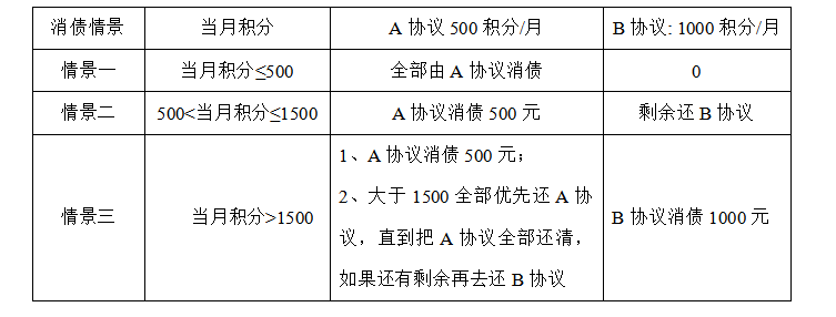 ##### (V1.0版本公示时间2024年【1】月【1】日) ### 特别提示: ****为使用消消乐平台的积分消债服务,您应当阅读并遵守本《消消乐用户积分消债规则》(以下简称“本规则”)。请您在使用服务之前仔细阅读、充分理解本规则的各个条款,特别是以加粗或下划线形式提示您注意的条款。** **您在阅读本规则过程中,如果您不同意或不理解本规则或其中任何条款,您应立即停止继续使用消消乐积分消债服务。您点击“已阅读并同意”或者通过其他方式实际签署、申请、参与积分消债服务的,则视为您已经阅读、理解并同意本规则之全部内容,并自愿受其约束。** **本“特别提示”是本规则正文的组成部分。**** #### 1.参与积分消债服务的前提 ##### 1.1可以参与积分消债服务的用户至少应满足如下全部条件: (1)属于消消乐平台注册用户; (2)已完成实名认证; (3)已签署相应的《积分消债计划》; (4)与积分消债合作方之间存在合法有效的债务; (5)前述债务仍在消债合作方的有效催收授权期内; (6)接受《消消乐用户积分消债协议》《消消乐用户积分消债规则》《积分消债计划》及其他平台协议和规则的约束。 **1.2** **您理解,鉴于债务人情况及债务类型的多样化,本规则第1.1条所列示的条件为参与积分消债的必要而非充分条件。消消乐有权综合您的历史交易行为、平台履约行为、资信状况、债务情况、您与其他积分消债参与方的履约情况等因素,对您的资格进行独立且终局的判断。** **1.3** 在积分消债的完整过程中,您应当始终具备参与积分消债服务的资格。若您的资格被暂停或取消,则消消乐有权对您的消债积分采取相应的冻结或清除措施。 #### 2. 积分的入账取得 **2.1** 消债积分将根据商品类型、商品数量、单笔消费金额等因素计算,**不同商品所对应的消债积分可能存在差异,具体请以商品详情页显示的数额为准**。 **2.2** 您通过消消乐平台下单商品并完成支付后,系统将对相应订单产生的消债积分计为“**待入账**”状态。**待入账的积分尚不可用于积分消债**。 **2.3** **当您确认收货或系统根据平台规则自动确认收货后,消消乐将自次日起开始计算为期七天的“入账等待期”,该期间的积分仍为“待入账”状态。** **2.4** 入账等待期届满前,若您的订单因任何原因发生退单/退款/退货等情形的,**该订单的积分将由“待入账”状态转为“取消”状态**。**积分被取消的订单将不再产生有效入账的消债积分。** **2.5** 入账等待期届满且您的订单未发生退单/退款/退货等情形且该订单不存在未解决纠纷的,**该订单的积分将由“待入账”状态转为“入账”状态**。**入账积分可在符合其他积分消债条件的情况下,用于可抵债务的清偿。** **2.6** 若您获得积分的订单发生全部退款的,消消乐有权直接扣除通过该笔订单获取的全部积分。若您获得积分的交易订单发生部分退款的,消消乐有权根据退款金额占订单总金额的比例扣除相应积分。 **2.7** **若您的订单在积分已入账或已抵扣之后发生退单/退款/退货等情形的,消消乐有权从您现有或随后产生的其他订单积分中对等额积分予以扣除。** **2.8** **若消消乐与您的债权方或其有效授权方的合作终止,或该等主体不再具备对您债务的有效催收或管理授权,消消乐有权对您账户中的剩余积分做清空处理。** #### 3.积分的抵扣消债 **3.1** 对于【每天18:00】之前已入账的消债积分,消消乐将于【当天24:00】之前自动与积分消债参与方开展抵债结算,您账户中的消债积分将自动扣减用于清偿您的可抵债务金额。**您理解,由于技术故障、通讯延迟、参与方等原因,实际债务抵扣时间可能存在提前或延迟,请以您实际查询的消债记录为准。** **3.2 正常兑换比例。**消债积分与可抵债务金额的正常兑换比例为: “壹消债积分”兑换“壹人民币可抵债务金额”。 举例:若您的消消乐账户存在1000消债积分,则在满足消债条件的情况下,该等积分可合计抵扣1000元可抵债务金额。 **3.3 惩罚性兑换比例。**消债积分与可抵债务金额的惩罚性兑换比例为: **“贰消债积分”兑换“壹人民币可抵债务金额”** 举例:若您的消消乐账户存在1000消债积分,且该等积分适用惩罚性兑换比例,则在满足消债条件的情况下,该等积分可合计抵扣500元可抵债务金额。 **3.4** **当您存在下列任一情形的,消消乐有权决定对您尚未兑换的积分和/或一定期间内的入账积分适用“惩罚性兑换比例”:** (1)您未能按照《积分消债计划》按时足额获取消债积分; (2)您存在其他违反平台协议、平台规则或法律规定的情形。 **3.5 取整扣除规则。消债积分均将以整数入账和抵扣。无论适用何种兑换比例,您用于可抵债务金额的消债积分都将向上取整扣除。举例:抵扣1000.10元债务所需的消债积分数为1001个(而不是1000.10个)。** **3.6 受限于客观情况及第三方协议安排等因素影响,消消乐平台消债积分并不适用于您的全部各类债务。可用于消消乐积分消债的债务(“可抵扣债务”)必须同时满足以下条件:** (1)您是该项债务的债务人,且; (2)您具备完全民事行为能力,且; (3)您具备参与积分消债服务的资格,且; (4)您的该项债务已经消消乐知晓并核实,且; (5)您的该项债务不存在诉讼、仲裁或其他未决的纠纷,且; (6)您的该项债务的债权人、债权人的受托人、其他有权主体已经与消消乐达成有效的